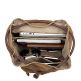 - The main compartment has vintage drawstring rope closure with genuine leather stopper adds style and durability; the top is covered by a front flap with magnetic button closure;