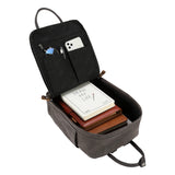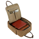 - Outer Material: Durable cotton canvas; Genuine leather trimmings and detailed zip pullers; Brass finished metal hardware.